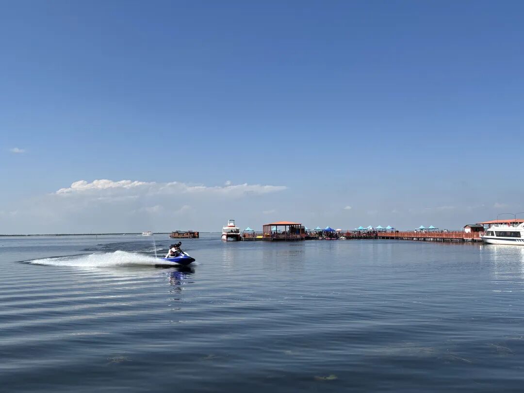 河套平原上,经过治理后的乌梁素海犹如一块蓝色宝石,引得各地游客前来亲水、观鸟。本报记者胡文鹏摄